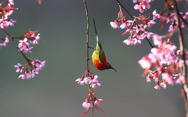 不远处 几只开心快乐的青鸟 享受着无边春色 深情歌唱 ……